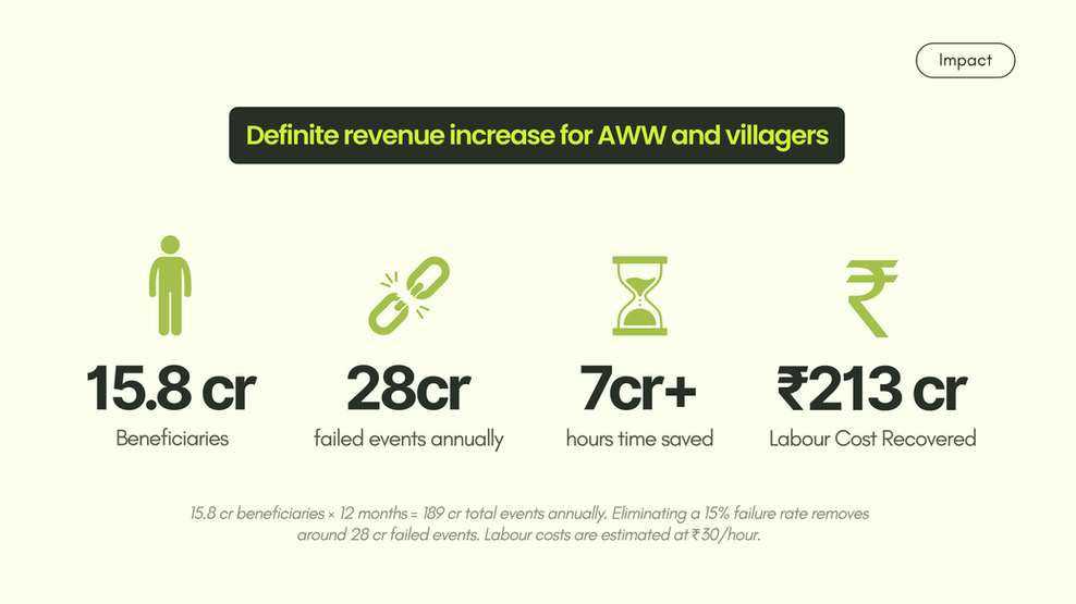 15.8 crore women and children in rural India depend on Anganwadi Centres for their daily nutrition.Yet, outdated processes, logistical delays, and manual systems lead to massive inefficiencies, from under-utilized rations to hours of wasted labour every day.